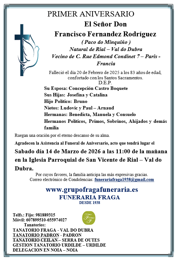 PRIMER ANIVERSARIO DE FRANCISCO FERNANDEZ RODRIGUEZ