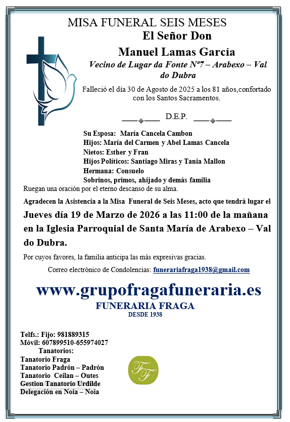 Misa Funeral de Seis Meses Don Manuel Lamas Garcia