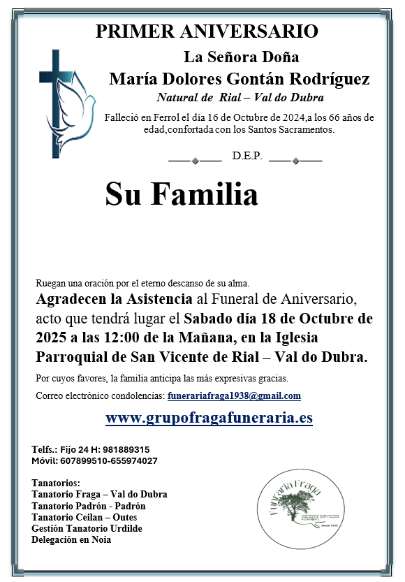 Primer Aniversario de Doña Maria Dolores Gontán Rodriguez